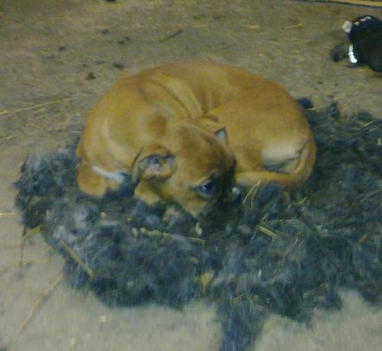 När man klipper hästarna så blir det ju en väldig massa hår över och jag kan ibland tycka att det är lite synd att slänga allt detta hår på gödselstaden. Astrid har nu uppfunnit ett nytt användningsområde för det överblivna håret, om man är en lite frusen boxer så kan man ju alltid passa på och sova lite i en fint isolerande hårhög...