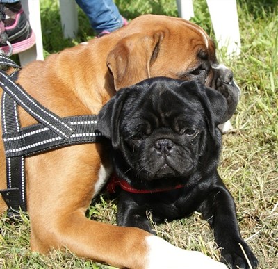 Hundarna är desto mer entusiastiska över mattens trädgårdsbestyr då mängden pinnar att tugga på är oändlig och desutom finns det nu massor av bra grävställen då små jordhögar uppenbarar sig lite här och var. Boxrarna deltar med liv och lust i all denna grävning och sågning, men de små mopsarna är portförbjudna och blir inlåsta då de alltid står precis framför skopan så att man inte ser dem när man ska gräva. Curt-Åke och Kajsa har ju blivit ett litet radarpar och Curt gör allt som Kajsa gör. Han har dessutom bestämt att jag är hans människa så det är bara att foga sig och konstatera att han blir kvar som en permanent del av den allmänna flocken på gården. Vi är nog ganska så nöjda med detta allihopa då både mormor och jag är väldigt förtjusta i honom och dessutom så råkar boxrarna tycka att han är en helt okej medlem i boxerkompaniet. Kajsa är den som är mest nöjd då hon länge önskat sig en liten adept som hon kan lära alla sina olika ideèr om livet som mops.