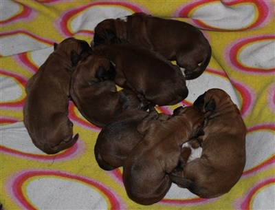 Fadern till de blivande små stjärnorna är även denna gång Tarraz (Engelaiz Undercover). Deras första kull ser helt fantastisk ut och jag skulle ju ha fått ha kvar en liten Fiffi ur den kullen, men eftersom det nu blev så att hon förolyckades så ville jag ha en ny likadan. Det är nu inte helt otänkbart att det blir en valp som liknar den jag förlorade, när jag parar Astrid och Tarraz med varandra så kan inte variationen bli så stor. Det är så med bra och jämn avel att om man hittar två individer som har samma styrkor och är lika varandra i det stora hela så är det troligare att man kan förutse resultatet än om man experimenterar och tar två individer där man försöker kompensera svagheter. Tarraz är en väldigt komplett hane på många sätt och om man tittar på hans och Astrids mentaltest så ser man att de är väldigt lika. Astrid har några poäng högre än vad han har, hon har 536 och han har 525, och skillnaden ligger i att hon har en liten gnutta mer uthållighet, men det har troligtvis mest att göra med att hon är tik och de ska vara lite segare virke än hanarna. De är också väldigt lika varandra fysiskt, två starka hundar som har lätt att bli muskelpaket, vilket verkligen syns på deras valpar som inte ser ut som vanliga små spetiga unghundar utan som är relativt välväxta. Att avla jämnt och att avla på prestationsgener är något som är självklart inom hästaveln och jag har bara översatt mitt tänk från hästarna till hundarna och är väldigt glad för att jag hittat en hane som passar så fint med min tiklinje. Det är inte så lätt att hitta bra matchningar och även om hundarna är relativt väldokumenterade så går det inte att jämföra med hästarna som tävlas flitigt. Tarraz är ganska så unik på det viset då han tävlar ungefär lika mycket som en bra häst och dessutom i den knepigaste bruksgrenen. Förutom att han tävlar framgångsrikt så har han ett väldigt trevligt sätt och han har varit och hälsat på ett antal gånger och faktum är att han skulle lika gärna kunnat bo i min flock, alla mina hundar tycker om honom och han beter sig precis som dem. Att hitta en boxerhane som klarar att släppas in på min tomt för att umgås med tokiga mopsar och ampra boxerdamer är ingen självklarhet. Den här parningen är lite av en säkerhetsparning, chanserna för att få något annat än det förväntade är inte så stora och jag får då förhoppningsvis en ny liten avelstik som jag sedan måste hitta någon lika fin hane till som hennes far och det blir en lite knepigare uppgift.